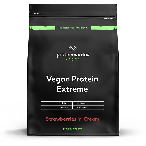 Protein Works - Vegan Protein Extreme, Premium Vegan Protein Powder, Plant-Based Protein Shake, Essential Amino Acids, Vitamins & Minerals, Low Sugar, Strawberries & Cream, 57 Servings, 2kg