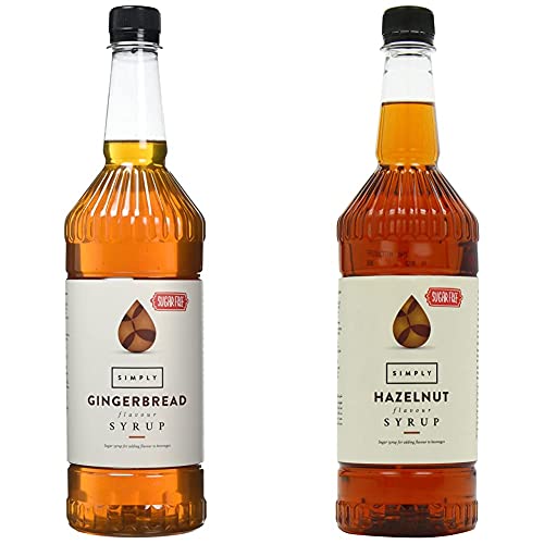 Simply Sugar Free Ginger Bread Syrup, 1 Litre & Sugar Free Hazelnut Syrup 1 Litre