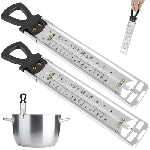 2Pcs Candy Thermometer, Jam/Sugar/Syrup/Jelly Temperature Guide with Hanging Hook & Pot Clip, Stainless Steel Cooking Thermometer, Instant Read Deep Fry Thermometer, Food thermometer