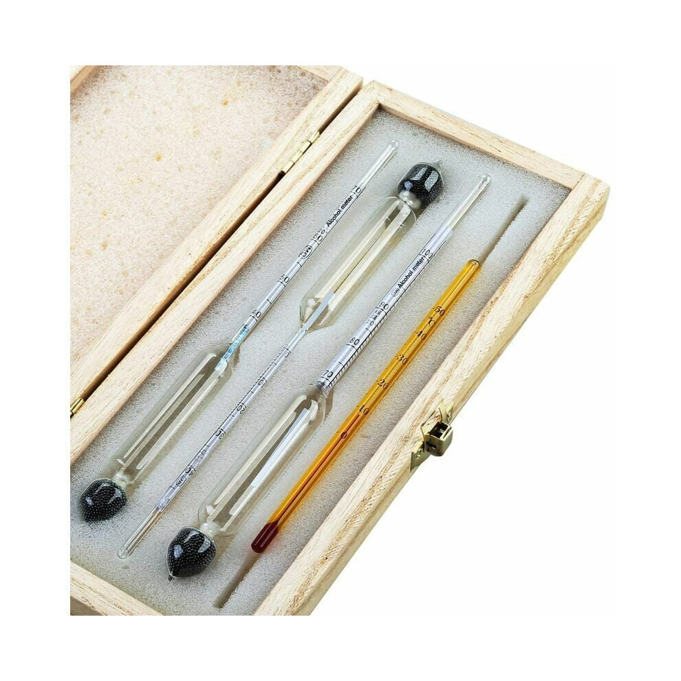 Sugar Density Meter Kit, Reliable Corrosion Resistance Hydrometer with Thermometer for Easy Operation, Manual Liquid Hydrometer in a Portable Wooden C