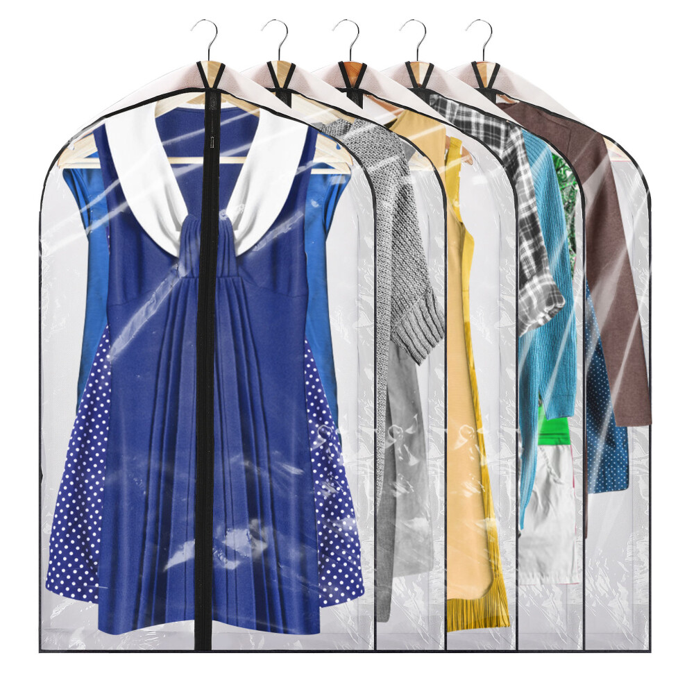 Garment Bags for Clothing Display, Reusable Clear Plastic Hanging Suit Covers for Moisture-proof Dust-proof Home Storage (5pcs)