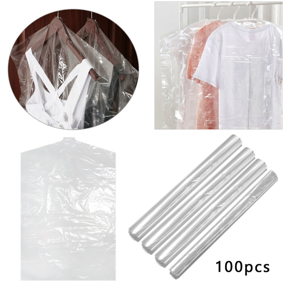 100pcs Clothes Dust Cover Disposable Dust Suit Bag Waterproof Garment Bags Wardrobe Hanging Clothing Coat Dust Cover Dust Shield