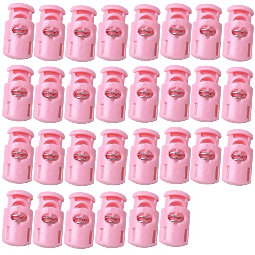 J.CARP 30Pcs Pink Plastic Cord Locks End Spring Toggle Stopper, Single Hole Elastic Cord Adjuster, Suit for Drawstrings, Bags, Shoelaces, Clothing, Paracord, and More