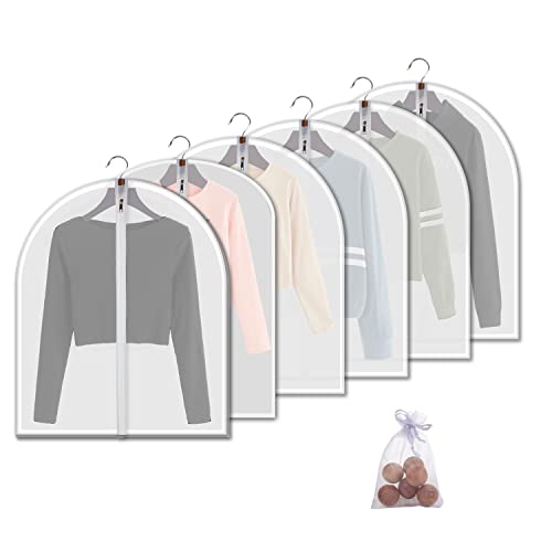 HomeClean Moth Proof Garment Bags 60 x 100cm(24'' x 40'') Hanging Clothing Storage Bags and 6 Cedar Balls for Suit Jacket Shirt Sweater Pack of 6