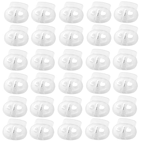J.CARP 30Pcs Clear Plastic Cord Locks End Spring Toggle Stopper, Double Hole Elastic Cord Adjuster, Suit for Drawstrings, Bags, Shoelaces, Clothing, Paracord, and More
