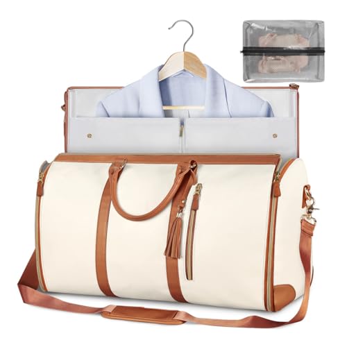 Garment Bags for Travel 2 in 1 Convertible Suit Travel Duffel Bag for Women, Stylish Carry On Duffle Bag with Shoulder Strap and Shoes Compartment (Creamy-White)