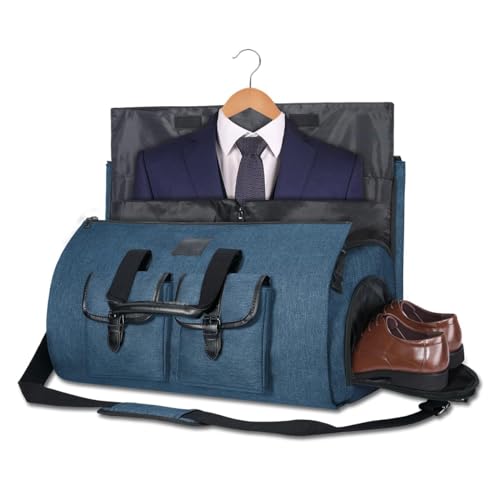 Convertible Garment Bag with Shoulder Strap, 2 In 1 Hanging Suitcase Carry-on Garment Bags Duffel Mens Suit Travel Bag, Blue, Travel