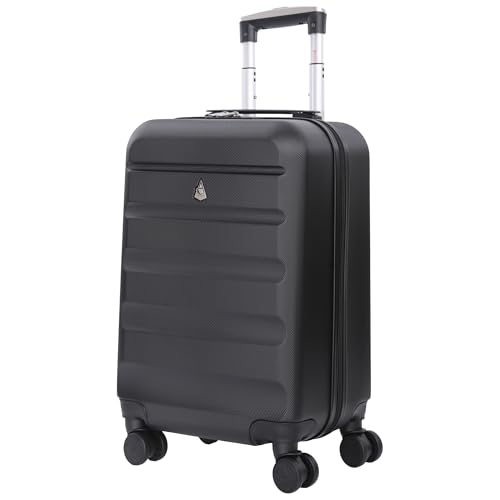 Aerolite 55 x 35 x 25 cm Hard Hand Luggage Suitcase with 4 Wheels, Maximum Size for ITA Airways Alitalia Air Europa Air France KLM and Transavia, Black, Cabin Luggage