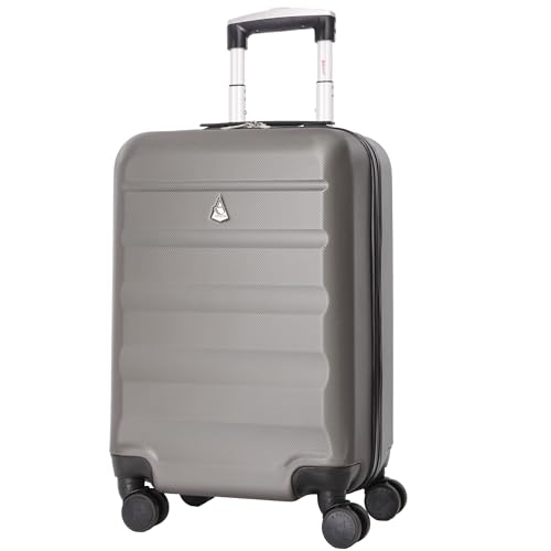 Aerolite 55x35x25cm Hard Shell Carry On Hand Cabin Luggage Suitcase 55x35x25 with 4 Wheels, Max Size for Air Europa Air France Alitalia KLM & Transavia (Charcoal V2)