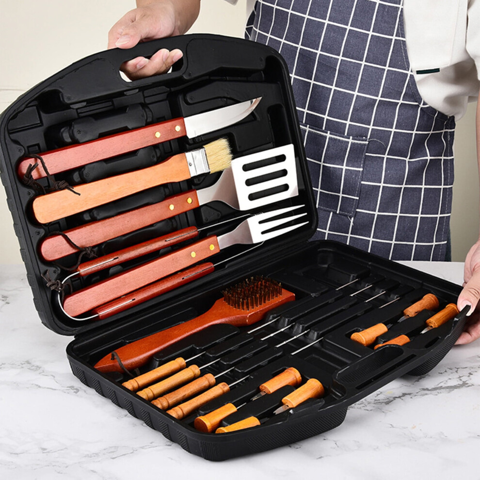 Daiosportswear Clearance Items Outdoor Barbecue Tools Combination Set Stainless Steel Wooden Handle Portable Suitcase BBQ 18 Piece Grillware Set
