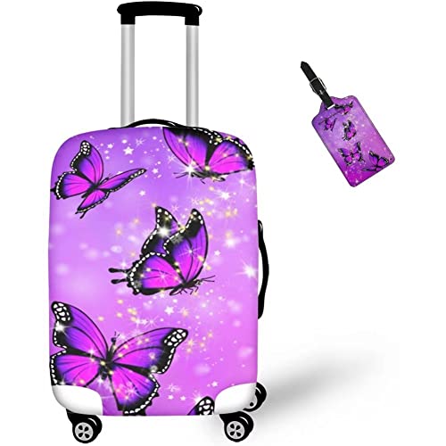 Allinterest Luggage Cover with Suitcase Tag, Set of 2 Elastic Luggage Covers Protective Washable, Purple Butterfly, Large