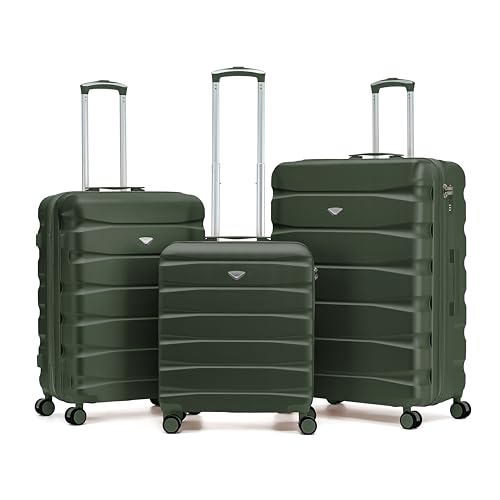 JLY Premium Hard Suitcase Set of 3 – 100% German Covestro Polycarbonate Luggage with 4 Spinner Wheels, TSA Lock, Superior Organisation – Small + Medium + Large – Olive Green