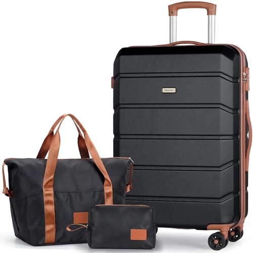 Kono Luggage Sets Hard Shell Suitcase Sets of 3 Piece ABS+PC Lightweight Travel Trolley with TSA Lock Spinner Wheels (Black/Brown)