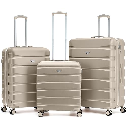 Searoute Suitcase Sets 3 Piece ABS Hard Shell Lightweight Durable Trolley Travel Luggage Set with 4 Spinner Wheels and TSA Lock (Small, Medium, Large)(Beige, Suitcse Set (21"+24"+28"))