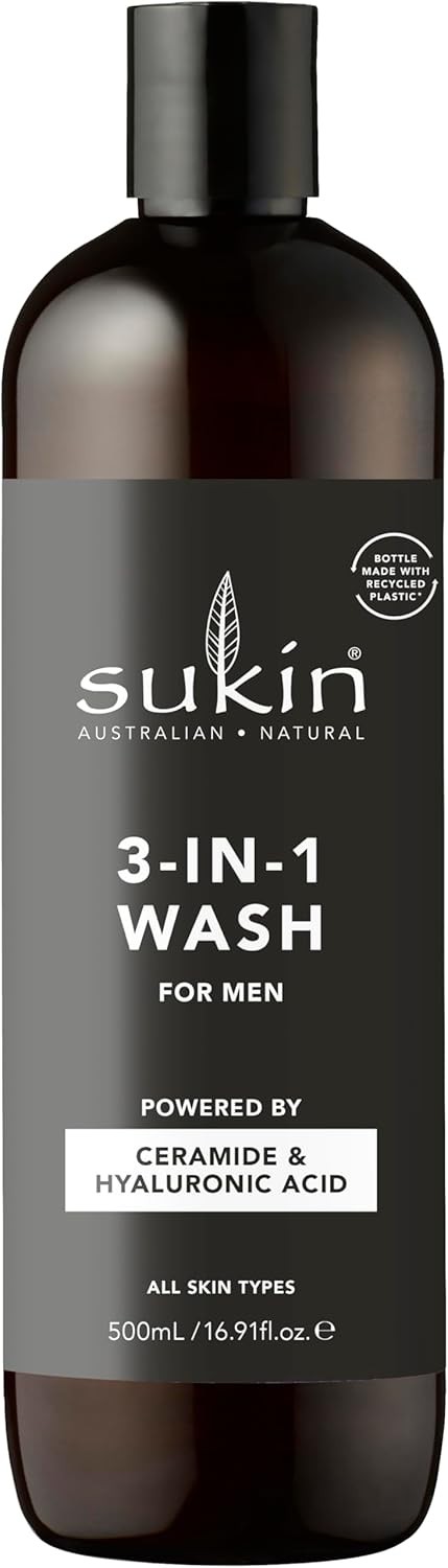 Sukin - Men's 3 in 1 Wash - Hydrates Face, Hair and Body - Infused with Ceramid