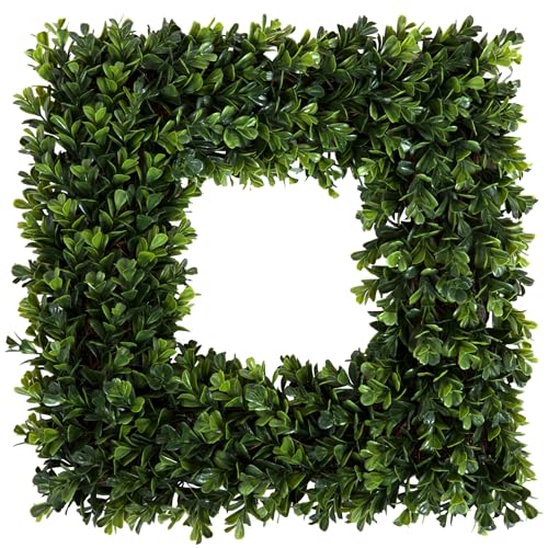 Pure Garden Boxwood Wreath - 16.5-Inch Square UV Resistant Artificial Spring, Summer, Fall or Winter Wreath - Outdoor/Indoor Wreaths for Front Door