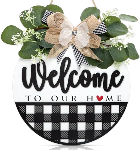 CHDITB Welcome Sign for Front Door,Welcome To Our Home Wooden Hanging Sign,Welcome Wreaths Sign for Farmhouse Porch Decor,Welcome Home Decorations,Front Door Wreaths For Summer