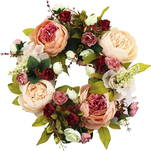 SogYupk Door Wreaths, 30CM Artificial Peony Flower Front Door Wreath for Spring Summer, All Seasons Floral Door Wreath for Farmhouse Office Home Wedding Party Decoration