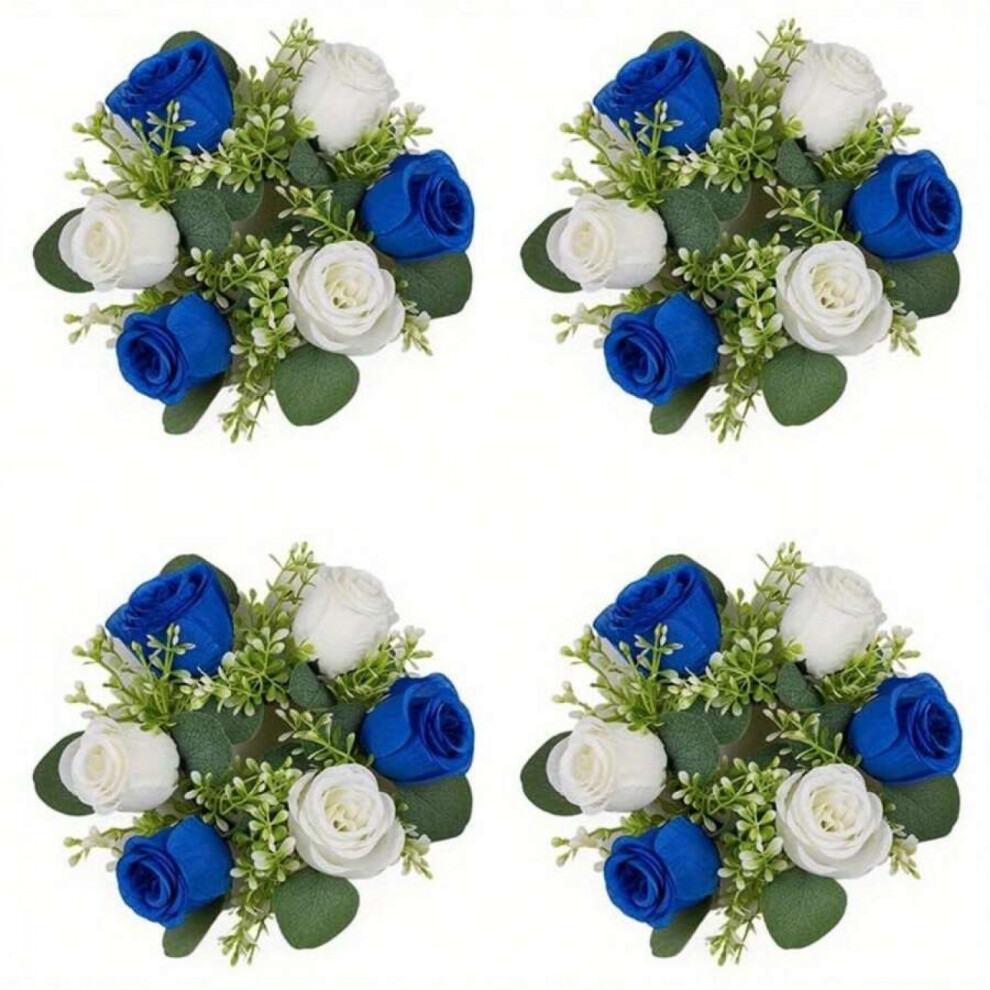 4pcs Blue Artificial Rose Candle Rings â Wedding Table Centerpieces, Spring/Summer Decor, Front Door Wreaths, Compatible with Standard Candles