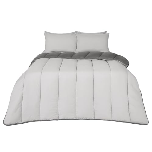 OHS Coverless Duvet King Size 10.5 Tog, Reversible Washable Coverless Travel King Duvets Summer Camping Duvet Soft Warm Comfy Bedding with Pillowcase, Grey/Silver