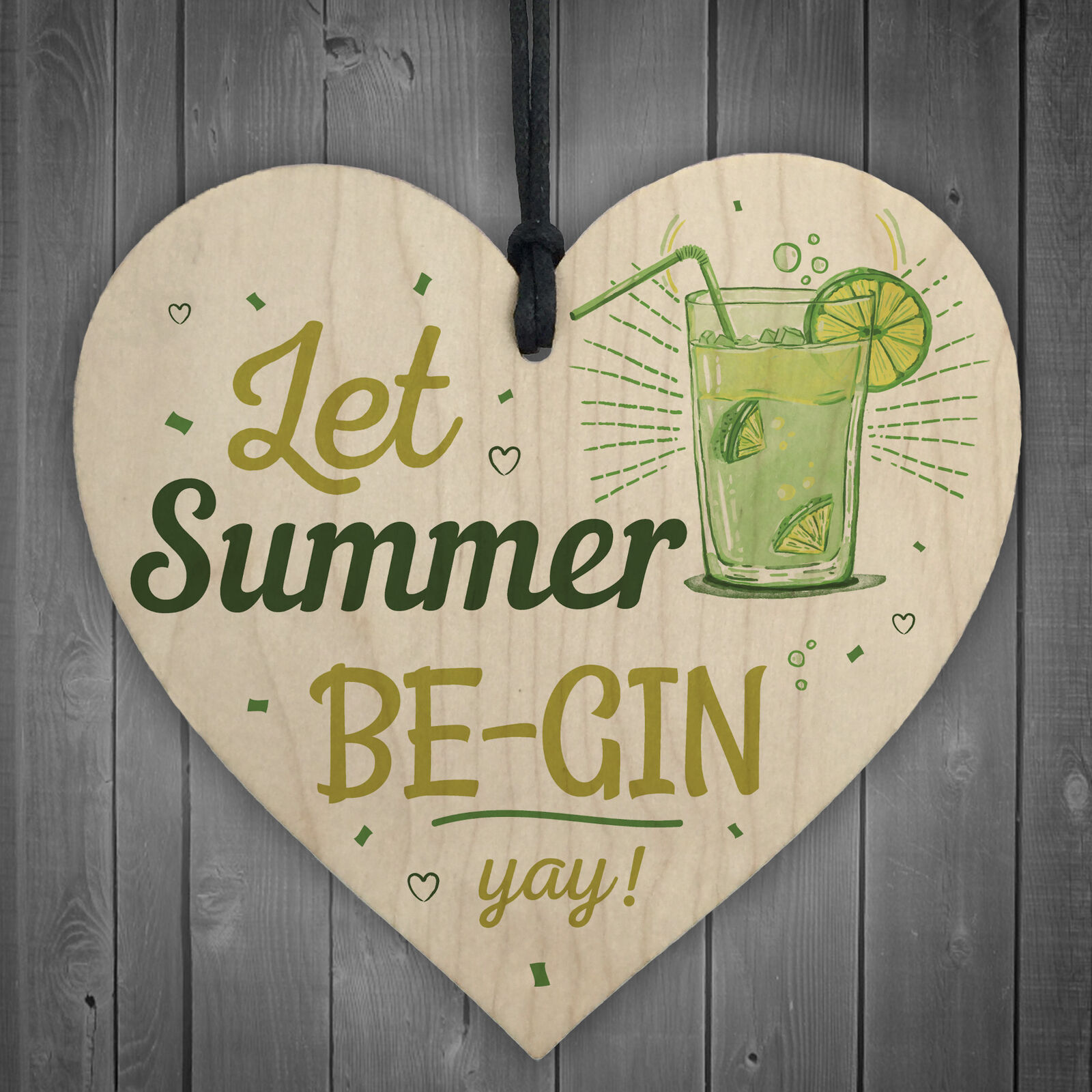 Let Summer Beg-in Summer House Heart Wood Plaques Garden Alcohol Gin Sign Gifts