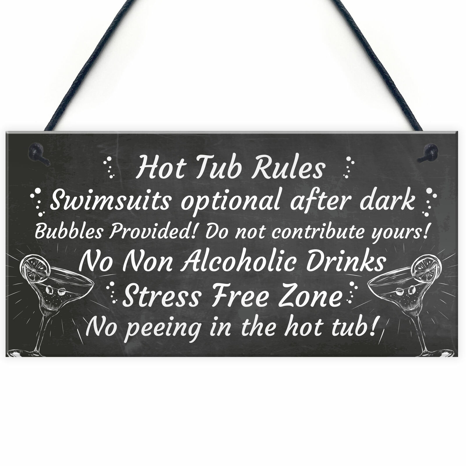 Chalkboard Hot Tub Rules Hanging Plaque Summer House Garden Sign Gift
