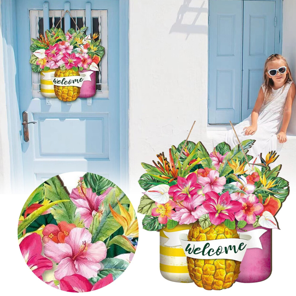 Federra Pineapple Sign Wooden Door Hanging, Rustic Porch Decoration, Pineapple Shaped Wall Decor with Bow for Summer House, Farmhouse, Garden