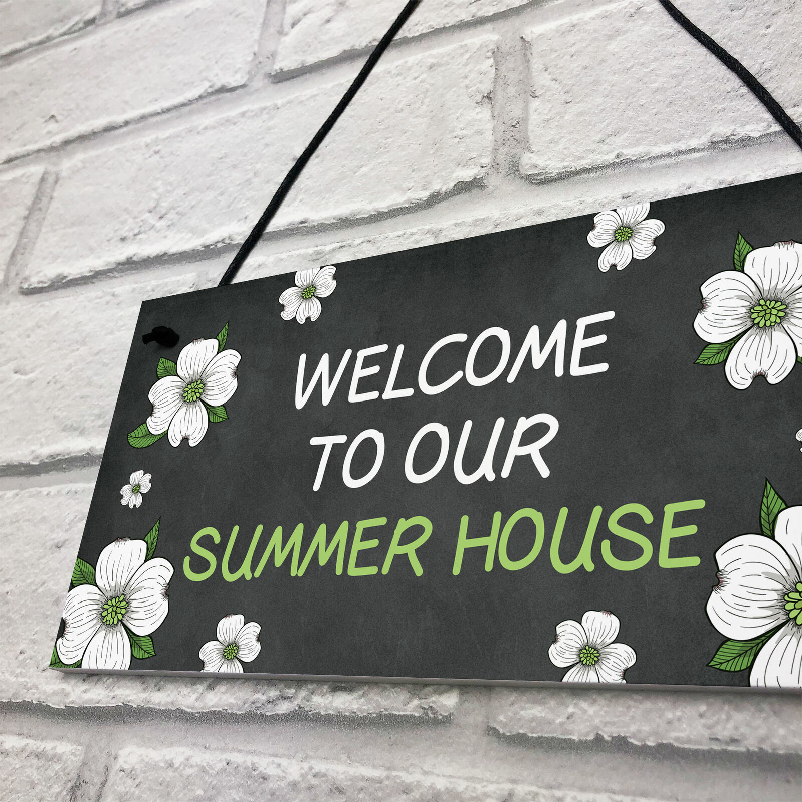 Welcome Summer House Plaque Hanging Shed Garden Sign Outdoor Chic Decor