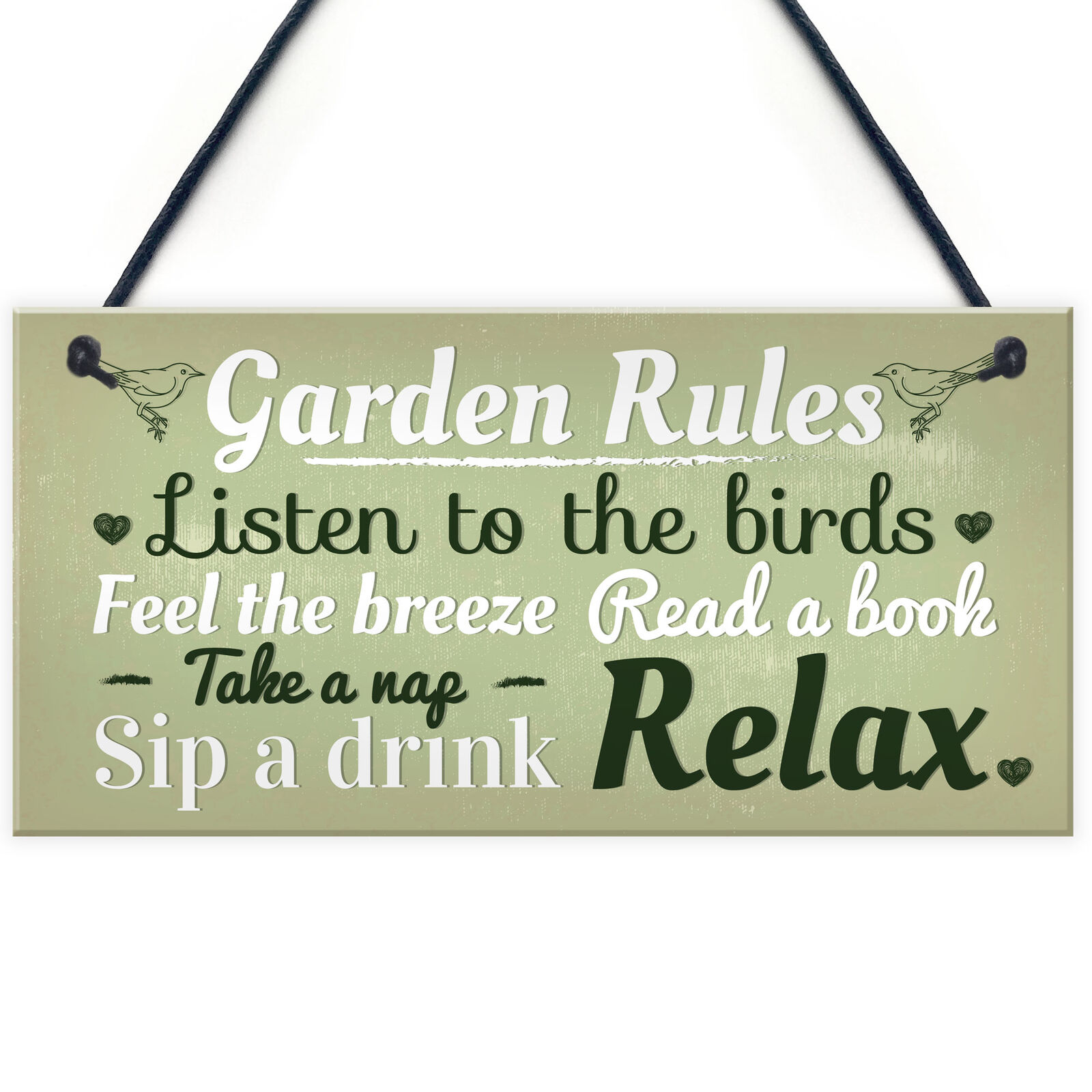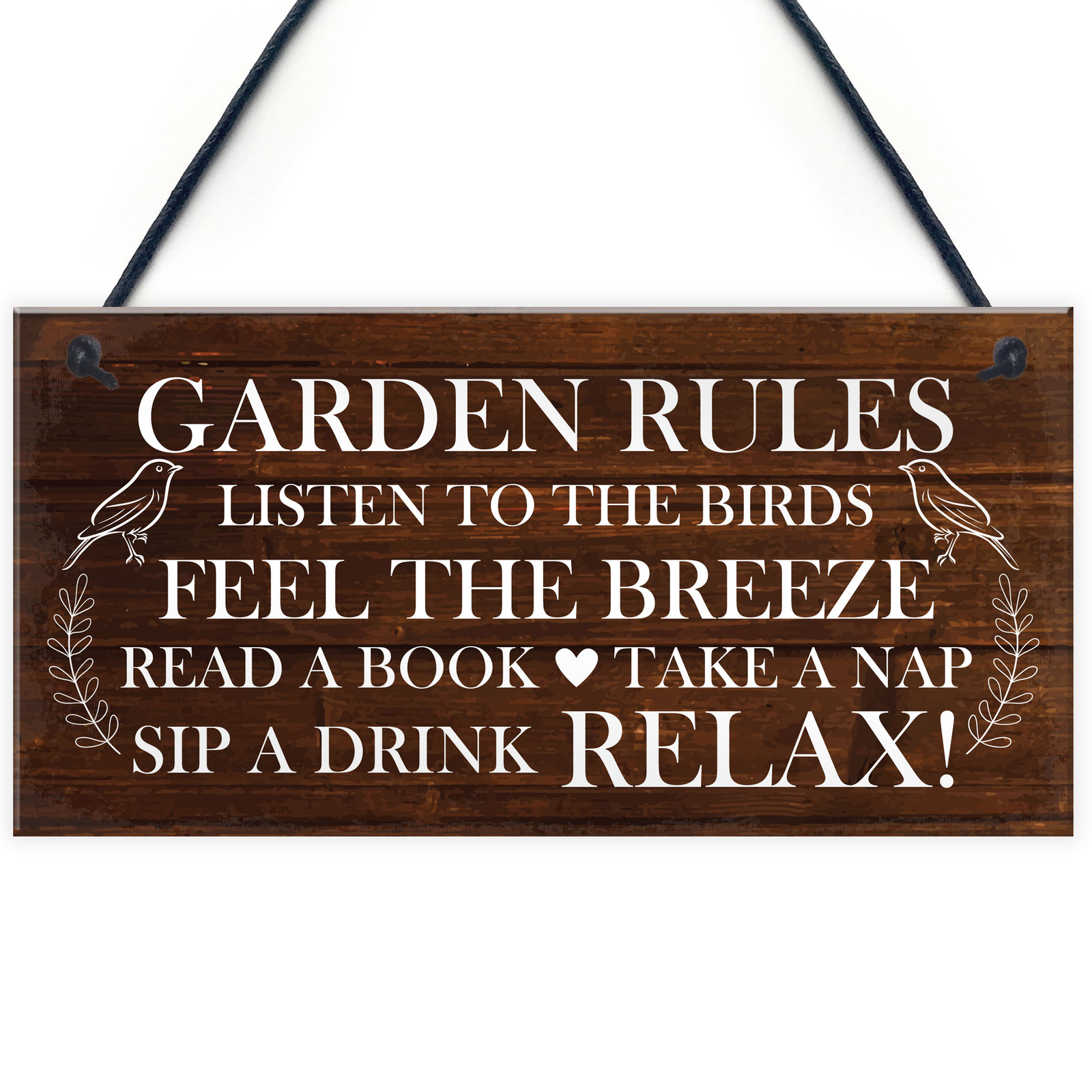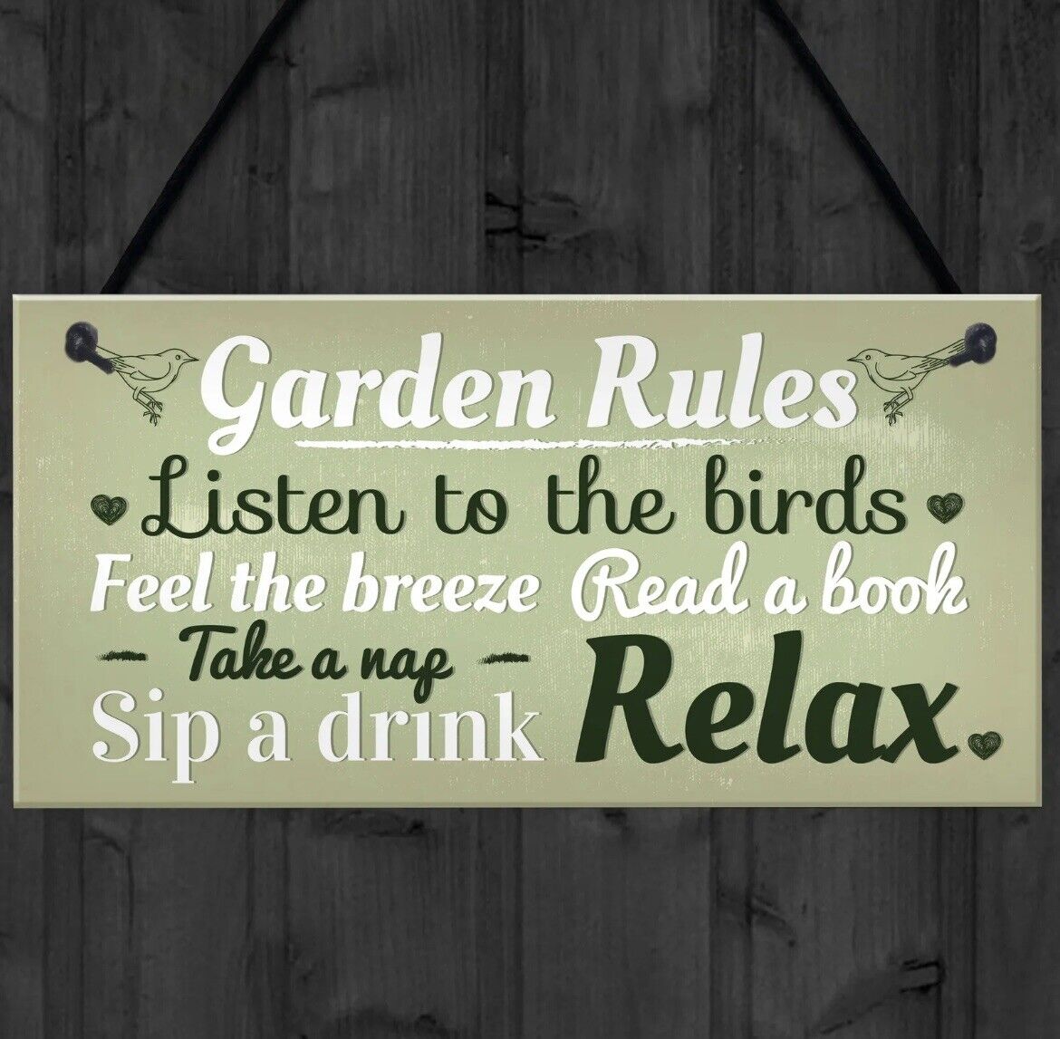 Garden Rules Relax Novelty Plaques SummerHouse Sign Garden Shed Friendship Gifts