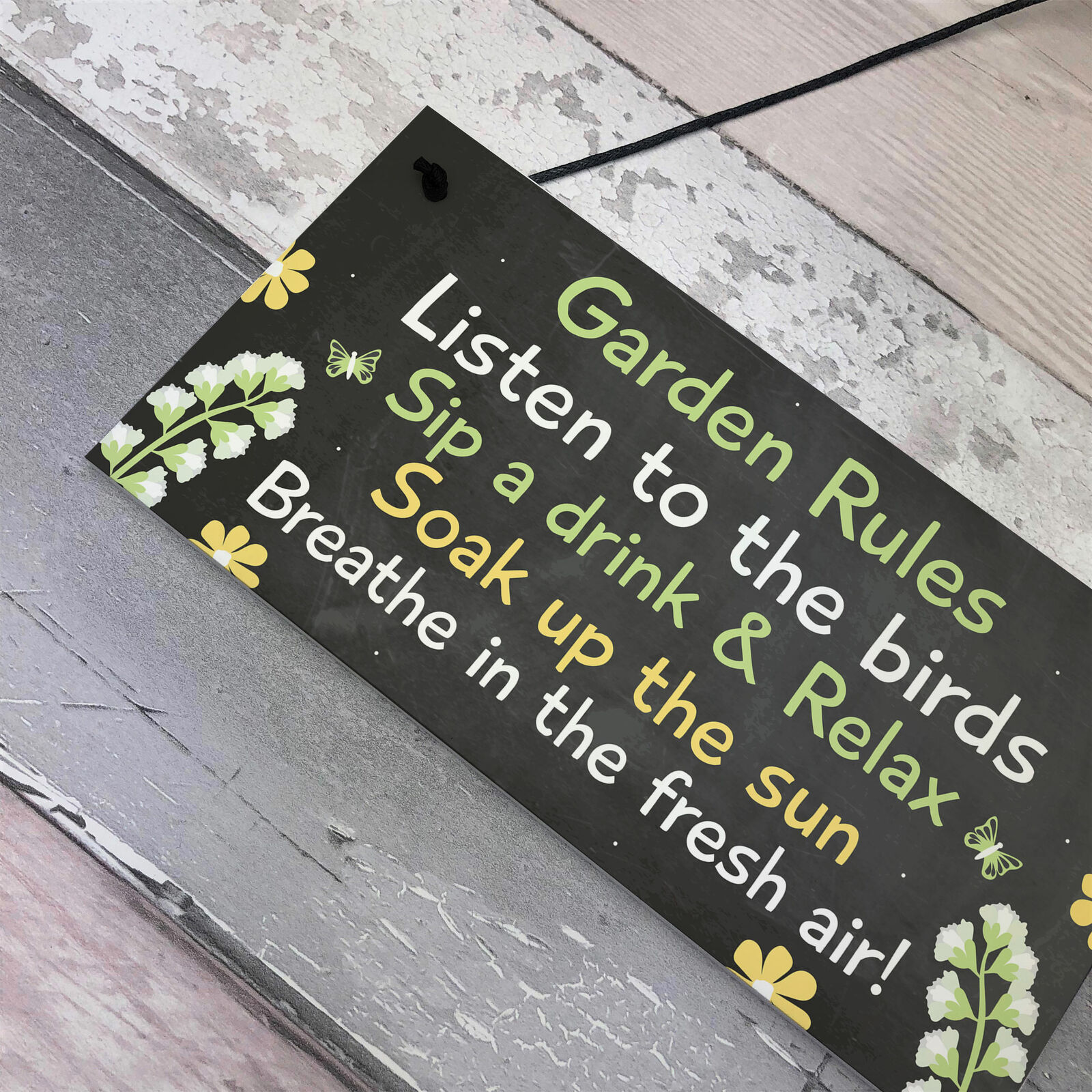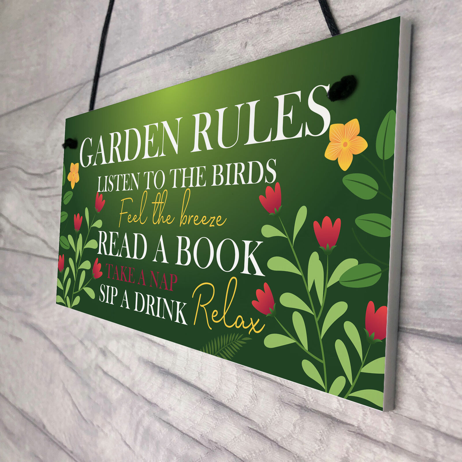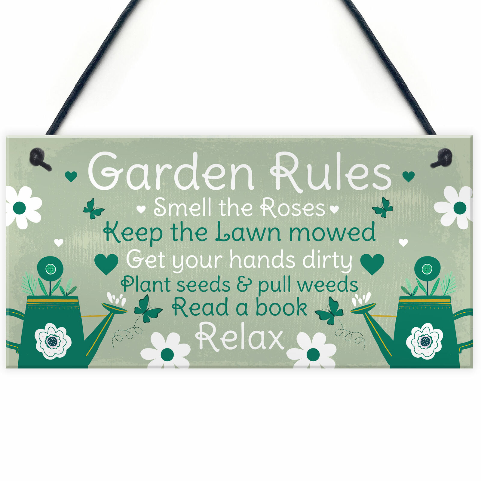 Garden Rules Novelty Hanging Plaque SummerHouse Sign Garden Shed Friendship Gift