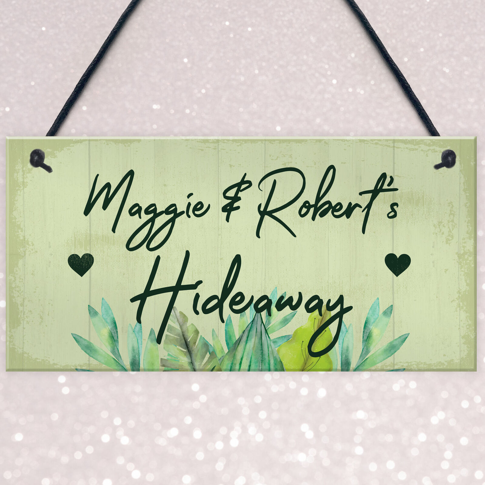 PERSONALISED Hideaway Sign Garden Summer House Plaque Shed Sign Couple Gift
