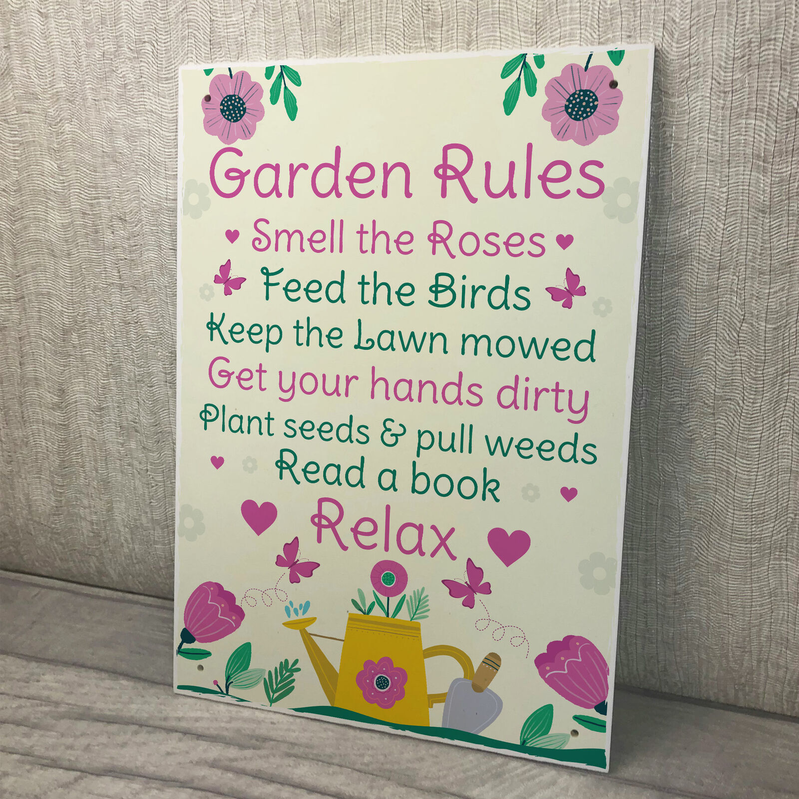GARDEN RULES Sign Summer House Sign Garden Shed Plaques Gifts For Women