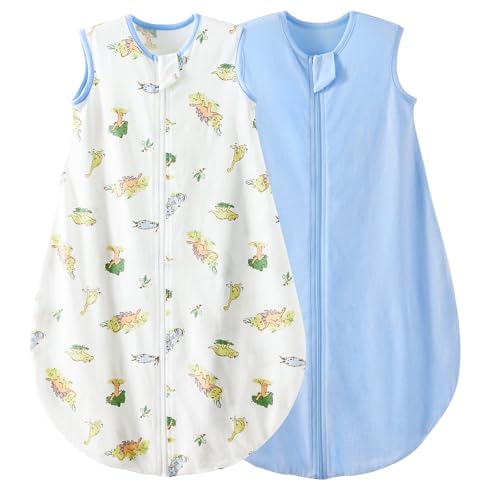 LULUMONKEY Baby Summer Sleeping Bag 2 Pack, 0.5 TOG Cotton Newborn Sleep Sack Wearable Blanket for 6-18 Months Toddler Baby
