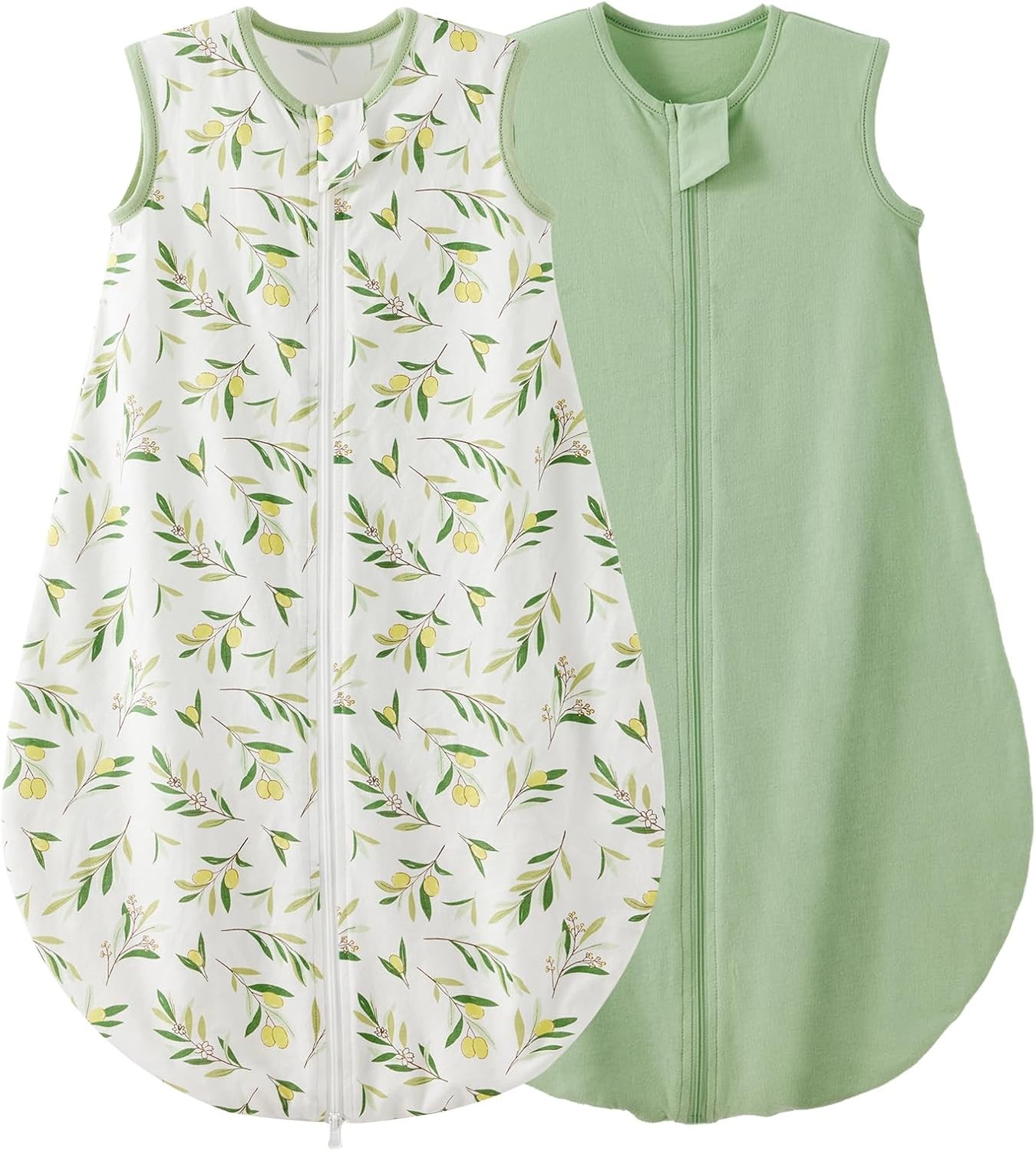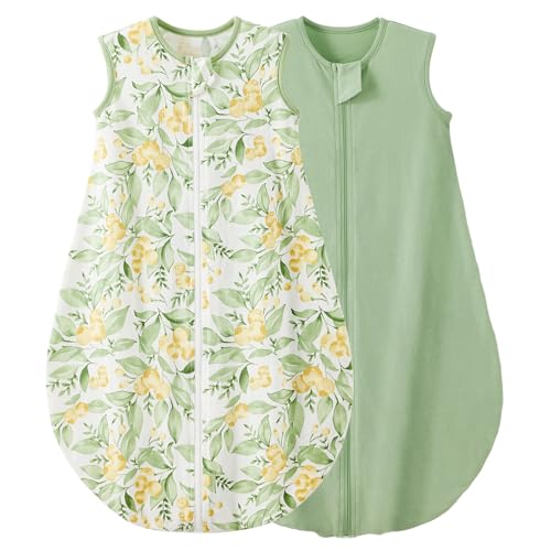 Duomiaomiao Baby Sleeping Bag 2 Pack 0.5 Tog Sleep Sack, Baby Summer Sleeping Bag 100% Cotton Baby Wearable Blanket Unisex Toddler Newborn Sleep Bag 6-18 Months, Green&Leaf