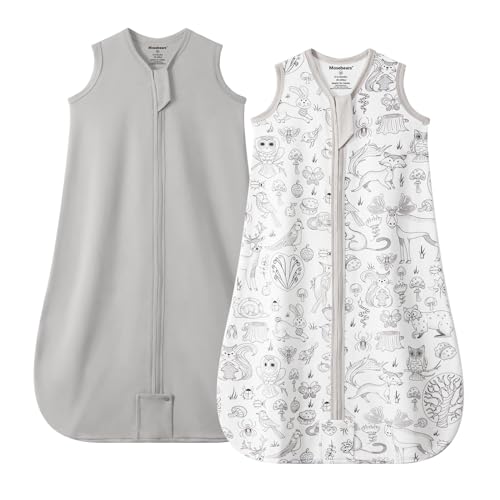 Mosebears Sleeping Bag Baby Summer Sleeping Bag 0.5 Tog Baby Sleeping Bag 100% Cotton Breathable Baby Sleeping Bag (2 Pack Gray, S)