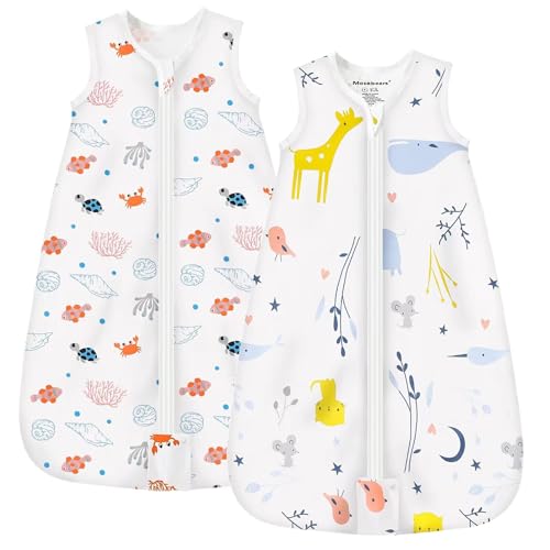 Mosebears Sleeping Bag Baby Summer Sleeping Bag 0.5 Tog Baby Sleeping Bag 100% Cotton Breathable Baby Sleeping Bag (Pack of 2, S)