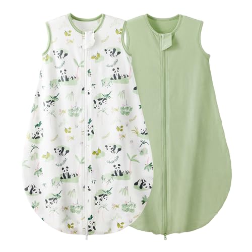 Duomiaomiao Baby Sleeping Bag 2 Pack 0.5 Tog Sleep Sack, Baby Summer Sleeping Bag 100% Cotton Baby Wearable Blanket Unisex Toddler Newborn Sleep Bag 18-36 Months, Green Panda