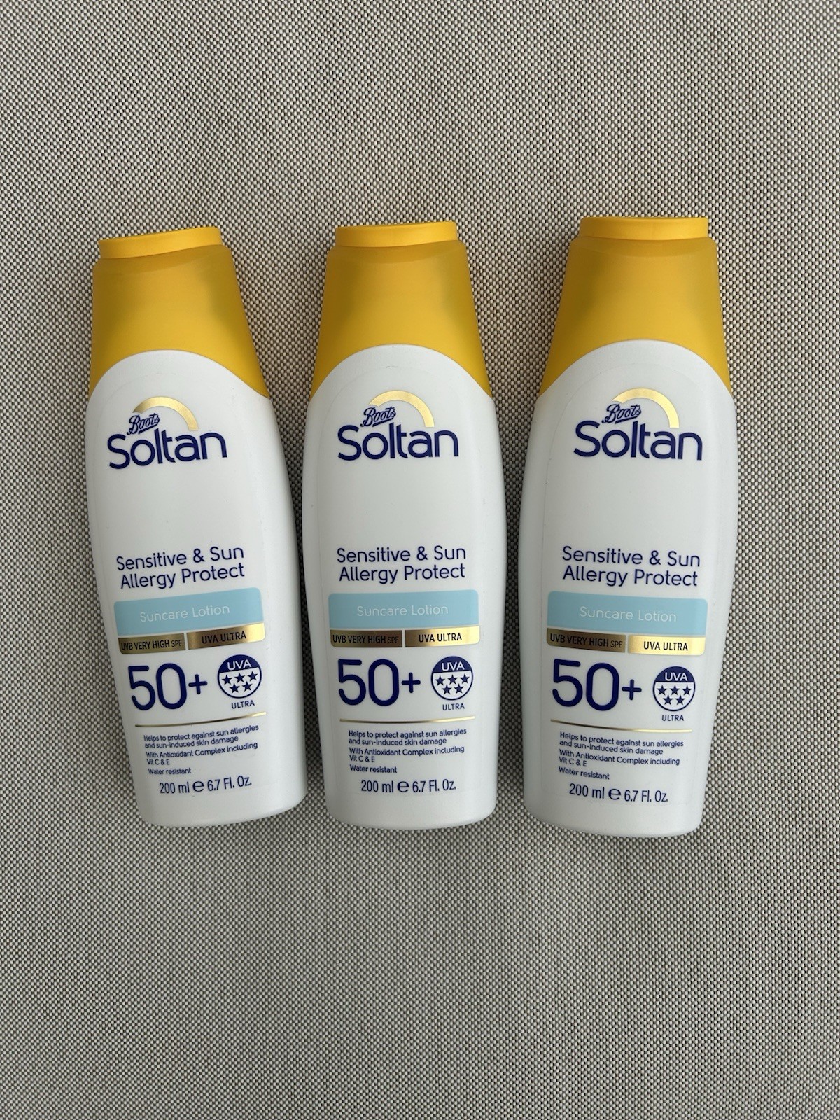 Soltan Sensitive & Sun Allergy Protect Lotion Lot 3 x 200ml SPF50+ FREEPOST