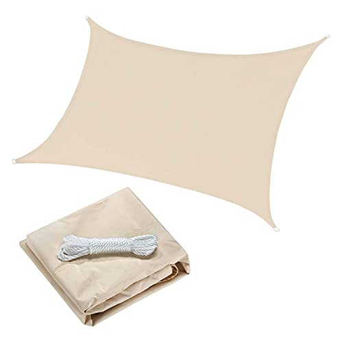Sun Shade Sail Outdoor Waterproof UV Protection 300D Polyester Awning Canopy Rectangle Sunshade Cover Net with Rope for Garden Yard Patio Pergola, Cream