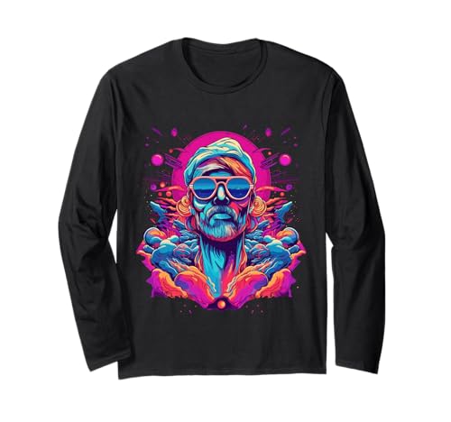 Beared Man Design. Sun Glasses, HAT Colorful Art Work, Cool Long Sleeve T-Shirt