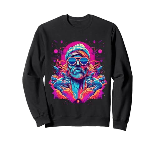 BEARED MAN DESIGN. SUN GLASSES, HAT COLORFUL ART WORK, COOL Sweatshirt