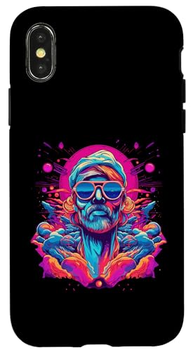 BEARED MAN DESIGN. SUN GLASSES, HAT COLORFUL ART WORK, COOL Case for iPhone XS Max