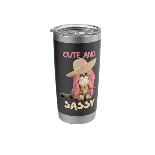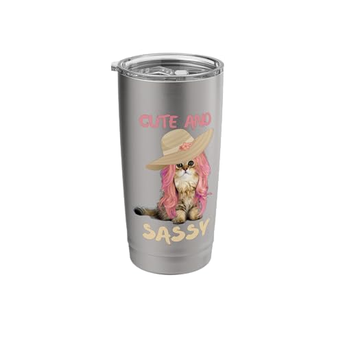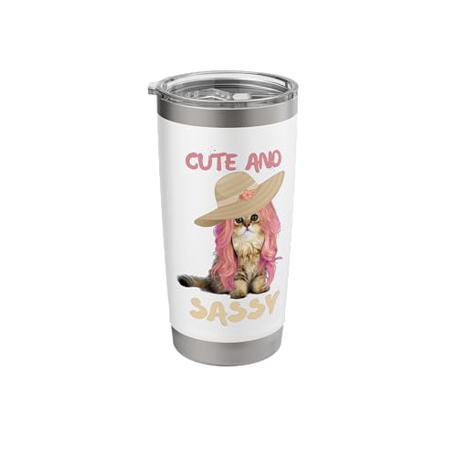 Cute and Sassy Cat with Pink Hair and Sun Hat Stainless Steel Insulated Tumbler