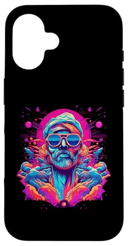 BEARED MAN DESIGN. SUN GLASSES, HAT COLORFUL ART WORK, COOL Case for iPhone 16 Plus