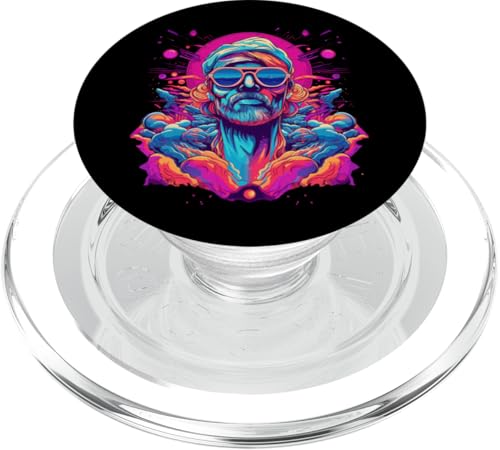 BEARED MAN DESIGN. SUN GLASSES, HAT COLORFUL ART WORK, COOL PopSockets PopGrip for MagSafe