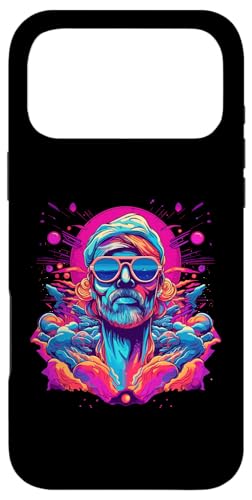 BEARED MAN DESIGN. SUN GLASSES, HAT COLORFUL ART WORK, COOL Case for iPhone 16 Pro