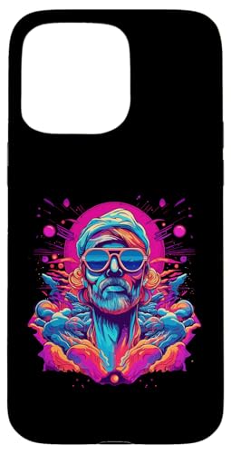 BEARED MAN DESIGN. SUN GLASSES, HAT COLORFUL ART WORK, COOL Case for iPhone 15 Pro Max