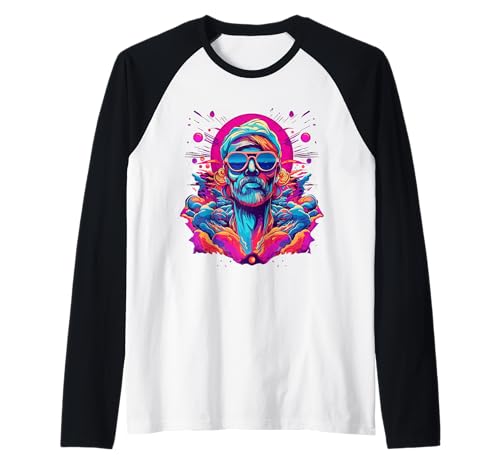 Beared Man Design. Sun Glasses, HAT Colorful Art Work, Cool Raglan Baseball Tee