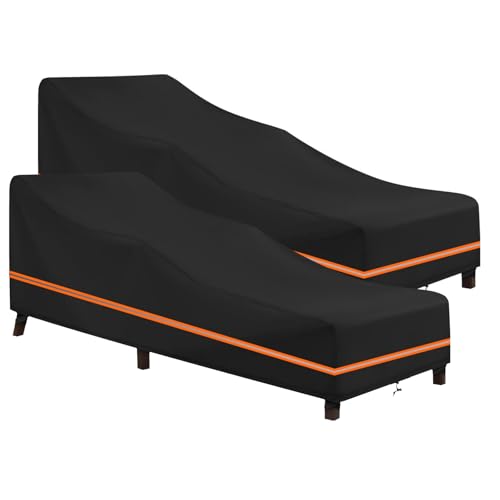 Awnic Garden Sunbed Covers, Rattan Furniture Sun Lounger Covers Waterproof for Outside with Air Vents Tear Resistant Heavy Duty Weatherproof Technical Fabric AlicanTex Black 200x75x40/70cm