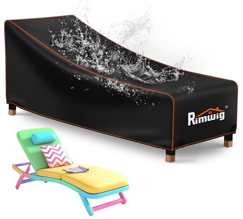 Rimwig Outdoor Sun Lounger Covers Waterproof, 420D Heavy Duty Patio Rattan Lounger Chair Cover Outside Garden Sunbed Cover Windproof Anti-UV 200x75x40/70cm Black